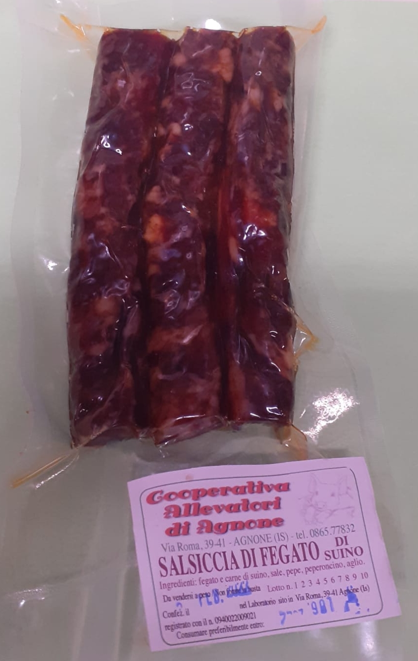 La salsiccia di fegato è un insaccato storico dell’Alto Molise. Si prepara con fegato e con l’aggiunta di un po’ di carne magra e grasso, sempre di suino.